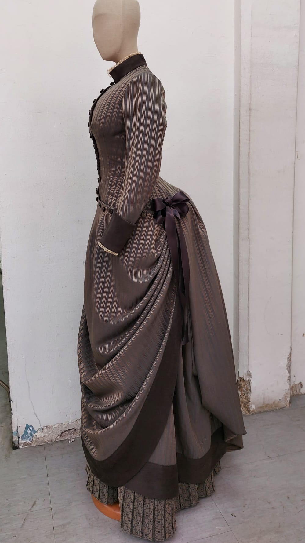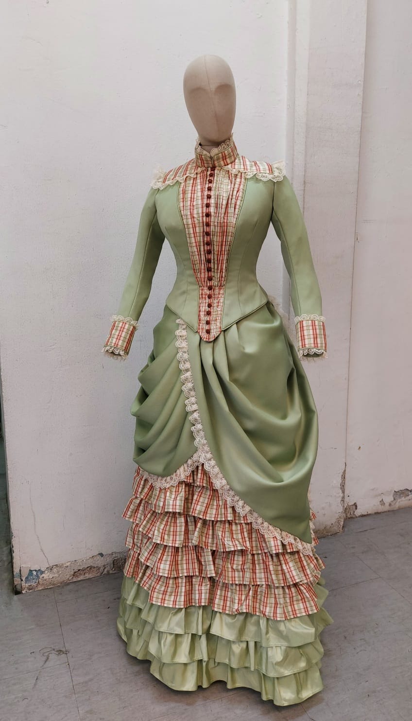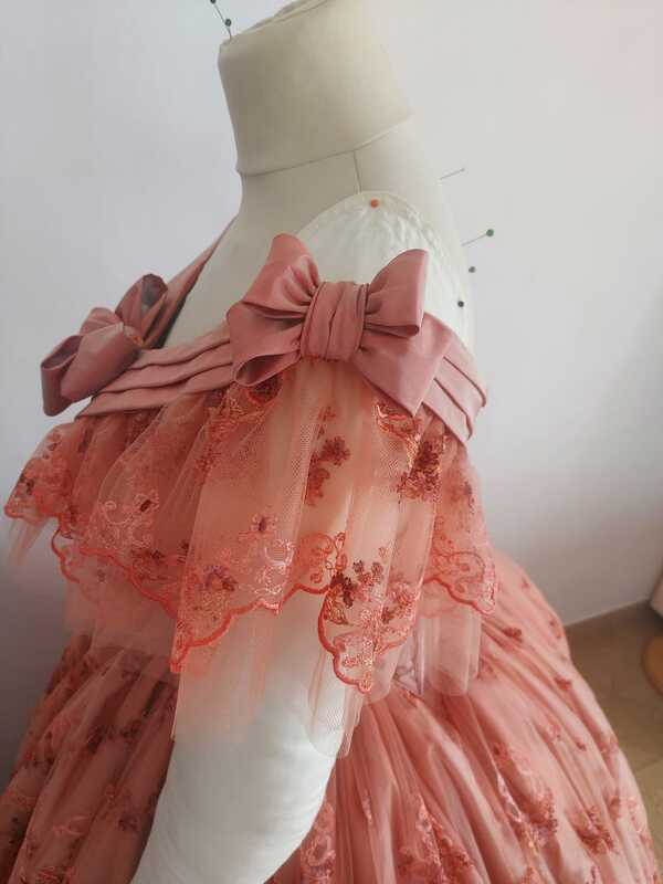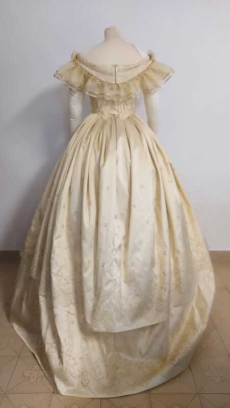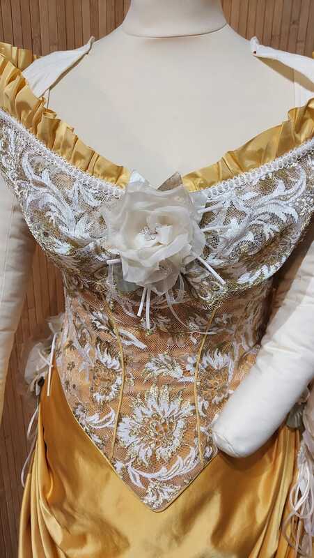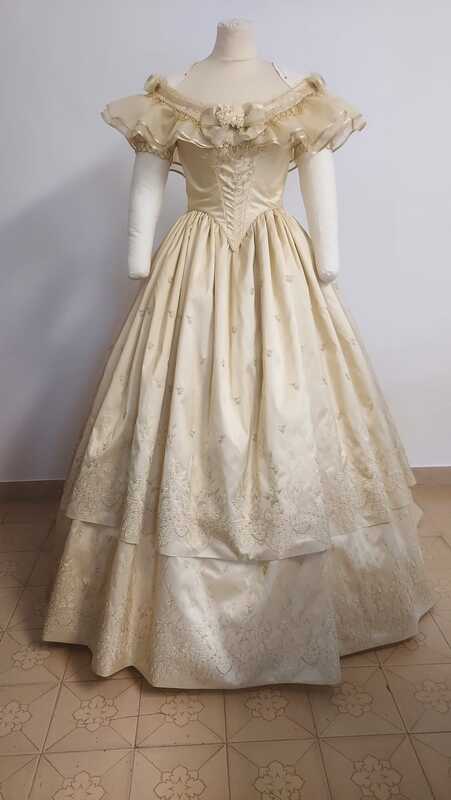 Jérôme selects materials that are true to the 19th century, sourcing luxurious fabrics such as silk, taffeta, and lace. Each fabric is chosen not only for its authenticity but also for its quality and ability to drape and move gracefully. Trimmings, buttons, and embellishments are carefully chosen to complement the fabric and enhance the historical authenticity of the dress. Tailored to Perfection