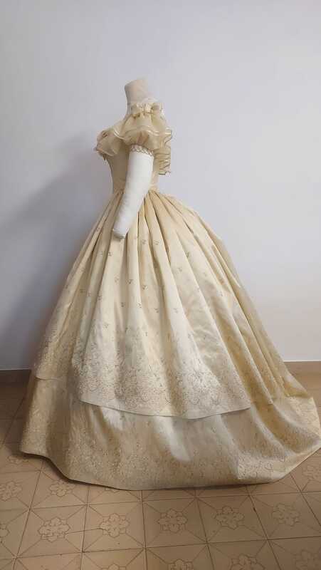 Explore our gallery to see the stunning 19th-century dresses crafted by Jérôme Dillinger. Each piece is a masterpiece, reflecting the intricate details and refined aesthetics of the time.